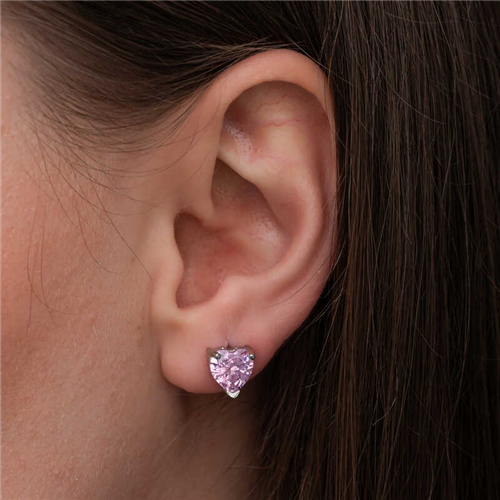 Silver Pink Stone Heart Studded Women's EarringsLet your love come to life on the skin of the woman you love with the heart earring model that expresses love with its heart pattern. Adorn your loved one with love with these heart earring that can be chosen by young lovers and those who feel young on special occasions. Heart patterned earrings that your loved ones will enjoy wearing as much as you will be one of the best gifts for your loved one. Heart women's earrings are made of 925 sterling silver. Rhodium plated on the silver. Rhodium plated silver women's heart earrings preserve their shine for a long time and oxidation is delayed. The stone on the earring is zircon. Like all women's earrings, the silver pink stone heart studded women's earrings are produced by hand. Due to silver and precious stones, there may be a ± 10% deviation in the average product weight.Earring Width: 0.90 cmEarring Length: 2.40 cmAverage Weight: 2.90 gr