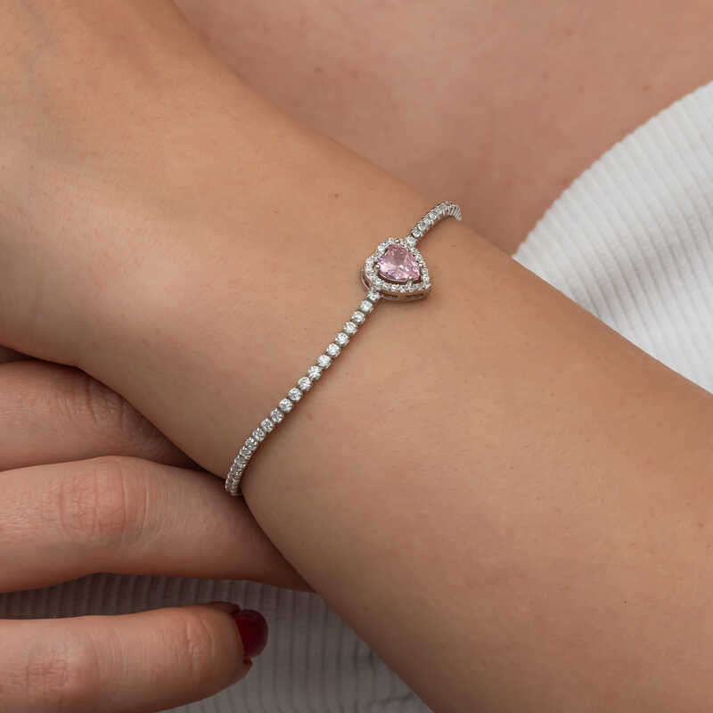 Silver Pink Stone Heart Waterway Bracelet You can have waterway bracelets, which are among the first choices of women who appreciate elegant and simple accessories, in different designs. Designed with fine and meticulous workmanship, you can use waterway bracelets to complete your style in any environment. You can choose waterway bracelets to add sparkle to your outfits and enhance the elegance of your wrist. The heart shape and waterway model provide a modern and chic look filled with symbols of love and commitment. If you are looking for a romantic and meaningful gift for your loved ones, these waterway bracelets can be an ideal choice. You can choose this simple and elegant bracelet, which has always been popular, as a birthday gift, Valentine's Day gift or a gift for mothers on special occasions. The silver heart waterway women's bracelet is made of 925 sterling silver. The silver bracelet is rhodium plated. Rhodium plated women's bracelets preserve their shine for a long time and delay oxidation. Like all silver women's bracelet models, this silver waterway women's bracelet is also produced entirely by hand. Due to silver and precious stones, there may be a ± 10% deviation from the average product weight. Heart Width: 1.00 cm Heart Length: 1.00 cm Bracelet Length: 21 cm Average Weight: 4.20 gr.