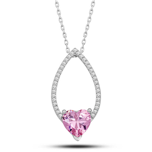 Silver Pink Stone Heart Women's Necklace You will love using this necklace, which reminds you of stars with its sparkling stones, for everyday life, special occasions and nights. This timeless silver necklace with stones that will never go out of style is waiting for you, appealing to all women who want to create a stylish look. Silver pink stone heart women's necklace is a perfect option for a birthday gift, Valentine's Day gift or as a gift for mothers on special occasions. Pink stone heart women's necklace is made of 925 sterling silver. Rhodium plated silver. Rhodium plated women's necklaces preserve their shine for a long time and delay oxidation. The stones on it are zircon. The average chain length is 45 cm. Like all women's necklaces, the silver pink stone heart women's necklace is also handmade. Due to silver and precious stones, there may be a ± 10% deviation in the average product weight. Width: 1.40 cm Length: 2.60 cm Average Weight: 3.90 gr.