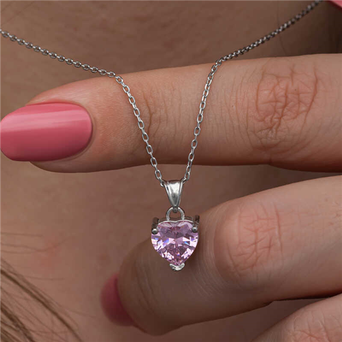 Silver Pink Stone Heart Women's Necklace Let your love come to life on the skin of the woman you love with the heart necklace model that expresses love with its heart pattern. Adorn your loved one with love with this heart women's necklace that young lovers and those who feel young can choose on special occasions. A heart patterned necklace that your loved ones will enjoy wearing as much as you do will be one of the best gifts for your loved one. The heart women's necklace is made of 925 sterling silver. Rhodium plated silver. Rhodium plated silver women's heart necklaces preserve their shine for a long time and oxidation is delayed. The stone on the necklace is zircon. The average silver chain length is 50 cm. Like all women's necklaces, the silver pink stone heart women's necklace is also handmade. Due to silver and precious stones, there may be a ± 10% deviation in the average product weight. Necklace Width: 0.90 cm Necklace Length: 1.10 cm Chain Length: 50 cm Average Weight: 2.90 gr