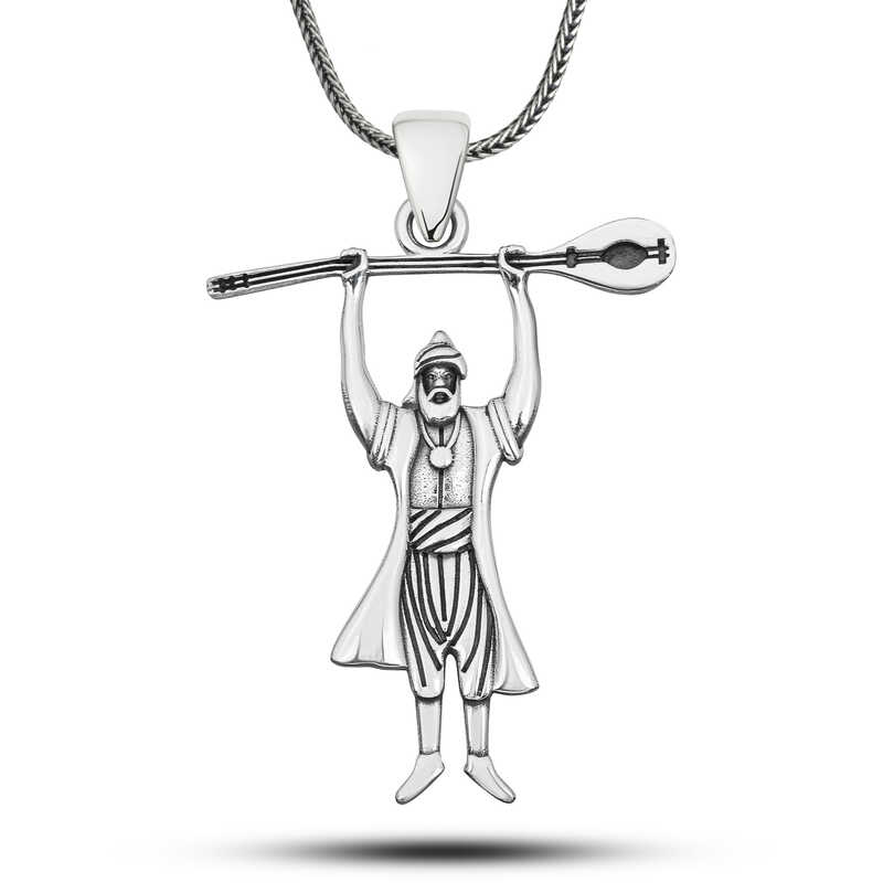 Silver Pir Sultan Abdal Men's Necklace Pir Sultan Abdal (née Haydar) is an important religious figure of Alevism of Turkmen origin, thought to have been born in the village of Banaz in the Sivas province of modern-day Turkey. He is considered legendary among his followers. His life has been reconstructed based on folkloric sources, especially religious poems believed to have been written by him and passed down by bards. Pir Sultan Abdal was a famous folk poet and poet who lived in the 16th century. Pir Sultan Abdal was of Alevi origin. Information about his life is generally obtained from his poems, stories passed down from generation to generation, and rumors. Pir Sultan Abdal is one of the bards known as the "Seven Greats" by the Alevi communities. This stylish necklace is a birthday gift, Valentine's Day gift, or a gift for special occasions. The necklace is made of 925 sterling silver. The silver is oxidized. silver necklaces made from natural stone preserve their shine for a long time. Like all necklaces, this silver Pir Sultan Abdal necklace is also entirely handmade. Due to silver and precious stones, there may be a ± 10% deviation from the average product weight. Width: 3.50 cm Length: 4.60 cm Average Chain Length: 55 cm Average Weight: 13.70 gr.