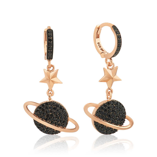 Silver Planet Women's EarringsHow about if all existence; the moon and the stars revolve around your love just as the planets revolve around the sun? The earring designed with this elegance in mind is a perfect option for a birthday gift, Valentine's Day or as a gift for mothers on special occasions. The earring is made of 925 sterling silver. Rose plated silver. Rose plated women's earrings preserve their shine for a long time, turn the silver color into pink and delay oxidation. As with all silver earrings, the silver planet women's earrings are handmade. The stones on it are zircon. Due to silver and precious stones, there may be ± 10% deviation in the specified product weight.Width: 2.10 cm. Length: 3.50 cm. Average Weight: 5.30 Gr