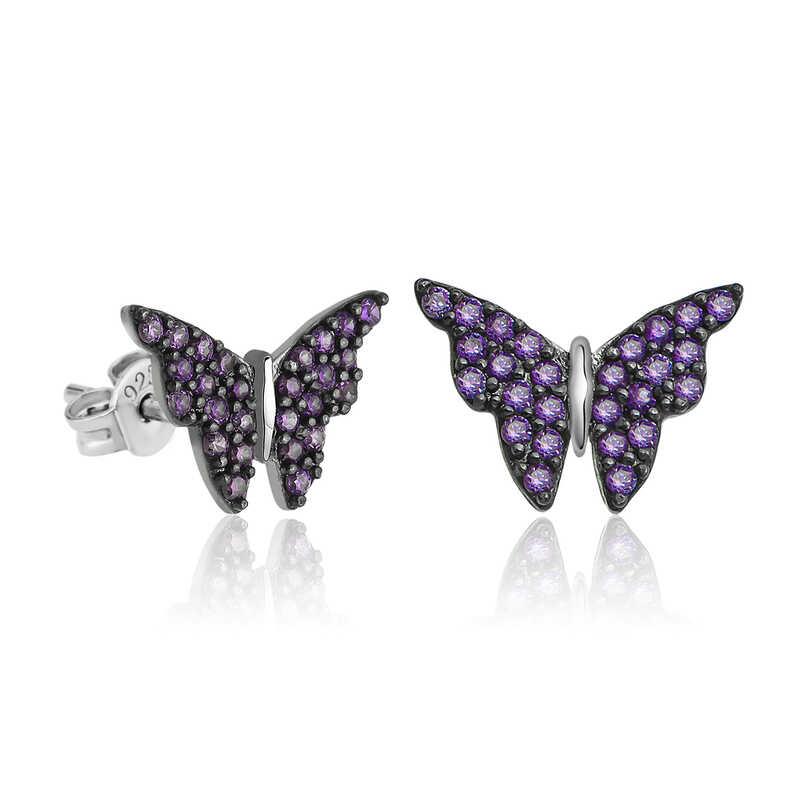 Silver Purple Butterfly Earrings Our collection includes different earring models that can adapt to the style of women of all ages, and uniquely designed earring models are waiting for you. The earring designed using the butterfly figure will blow your mind. A model suitable for daily use, the earring is with you at all times. You will love using the dazzling silver butterfly earrings. You will definitely find the right earring for both you and your loved ones in this collection. Silver purple butterfly earrings are made of 925 sterling silver. Rhodium plated silver. Rhodium plated silver women's earrings preserve their shine for a long time and oxidation is delayed. The stones on them are zircon. Like all silver women's earrings, this silver purple butterfly earring model is also handmade. Due to silver and precious stones, there may be a ± 10% deviation in the average product weight. Width: 2.10 cm Length: 0.80 cm Average Weight: 1.20 gr.