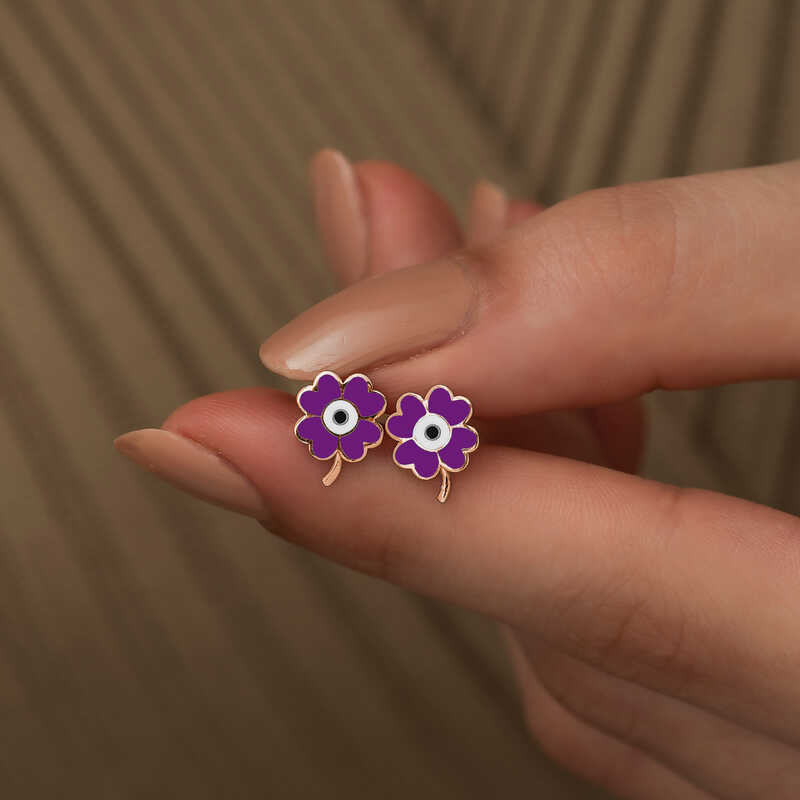 Silver Phosphorescent Purple Clover EarringsSilver studded earring models are among the most special jewelry items that you can use at any time of the day. You can start accentuating your style with silver studded earrings, which can best reflect the shine of silver and stand out with their lightweight structure. Phosphorescent purple clover earrings, preferred by women who are sensitive about their appearance and want to stand out with their style, are among the original models that can adapt to the style of young people and women who feel young. Studded earrings, which are among the timeless designs, allow you to revitalize your style in line with fashion. They are a perfect option for a birthday gift, Valentine's Day gift or on special occasions. Silver phosphorescent purple clover women's earrings; Made of 925 sterling silver. Rose gold plated on silver. Rose gold plated silver earring models preserve their shine for a long time and oxidation is delayed. Like all women's earrings, this earring model is produced by hand. Due to silver and precious stones, there may be a ± 10% deviation in the average product weight.Width: 2.00 cmLength: 2.00 cmAverage Weight: 1.20 gr.