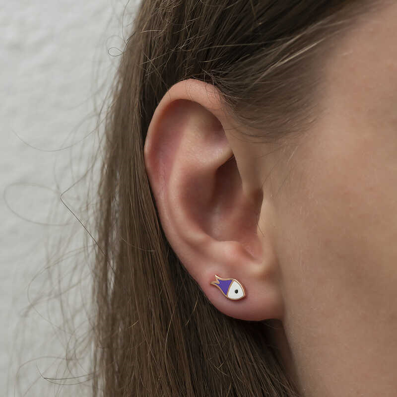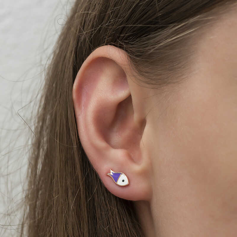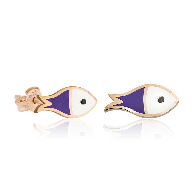 Silver Purple Fish EarringsOur collection includes different earring models that can adapt to the style of women of all ages, and uniquely designed earring models are waiting for you. The earring created using the purple fish figure will blow your mind. A model suitable for daily use, the earring is with you at all times. You will love using the dazzling silver purple fish earrings. You will definitely find the right earring for both you and your loved ones in this collection. Silver purple fish earrings are made of 925 sterling silver. Rose plated silver. Rose plated silver women's earrings preserve their shine for a long time and oxidation is delayed. They have purple and white enamel on them. Like all silver women's earrings, this silver purple fish earring model is produced by hand. Due to silver and precious stones, there may be a ± 10% deviation in the average product weight.Width: 1.20 cmLength: 0.60 cmAverage Weight: 1.20 gr.