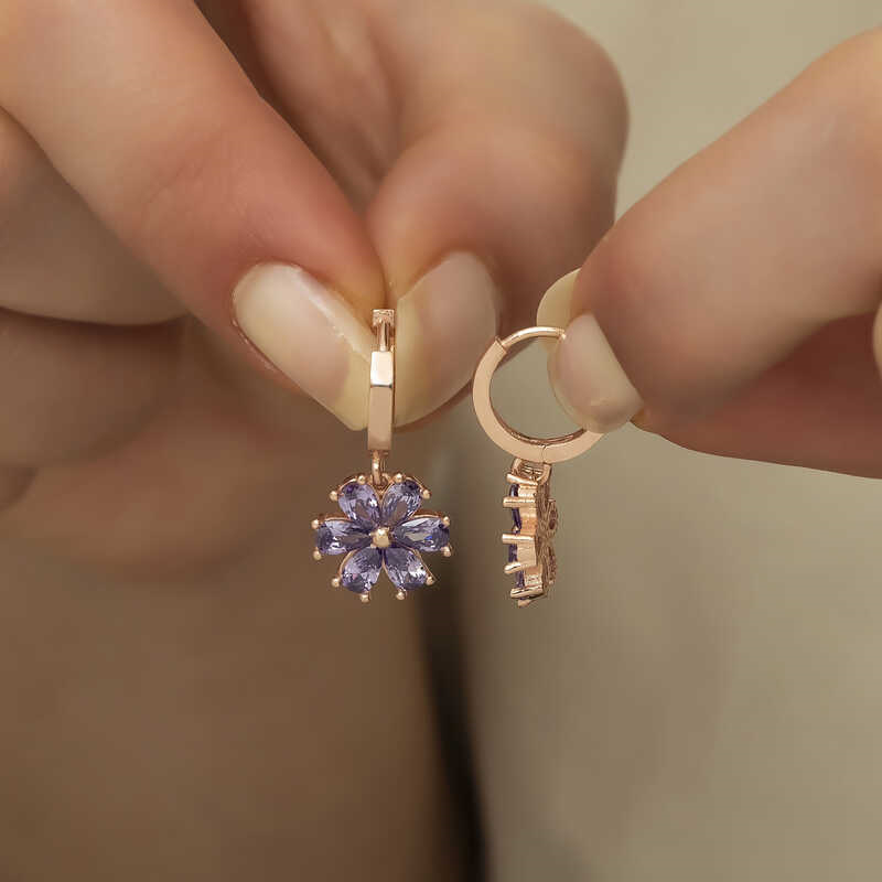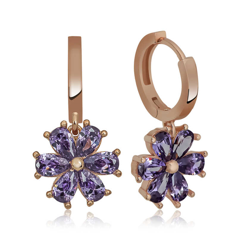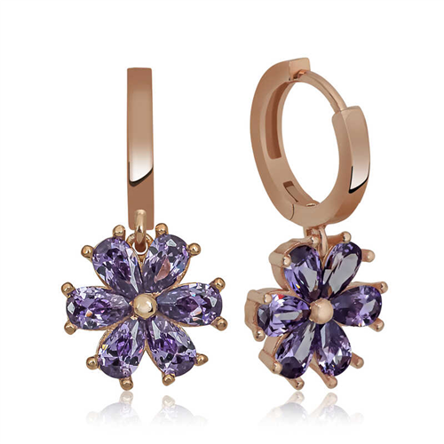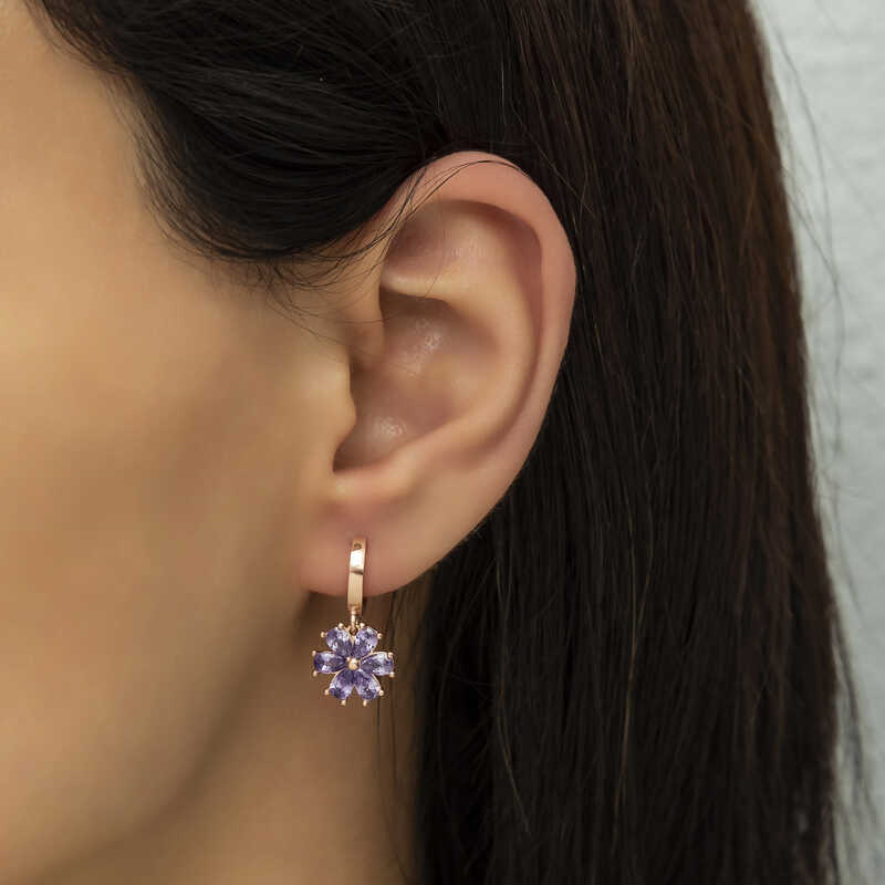 Silver Purple Flower Women's EarringsWhy not express your feelings to your loved ones with elegant floral earrings? This stylish earring, which is among the gift options that you can send her on special occasions, is among the most beautiful ways to make your loved ones happy. Silver purple flower women's earrings, crafted with the highest quality and most sparkling stones, are waiting for those who want to express their love once again, for those who want to say "you are a flower." This specially designed silver purple flower women's earrings is made of 925 sterling silver. Rose plated silver. Rose plated silver women's earrings preserve their shine for a long time and oxidation is delayed. Like all women's silver earring models, the silver purple flower women's earrings are produced by hand. There may be ± 10% deviation in the specified product weight due to silver and precious stones. Width: 1.10 cmLength: 2.30 cmAvg. Weight: 4.10 gr.