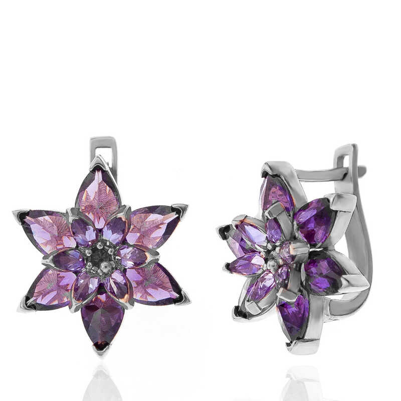 Silver Purple Lotus Flower Women's EarringsThe Lotus Flower is one of the most beautiful flowers that symbolizes spirituality, morality, and cleansing. The lotus flower, which blooms in the polluted waters of the rainforest, has managed to become a symbol of beliefs such as Buddhism and Hinduism with its beauty and purity. Moreover, the lotus flower is considered sacred in many ancient civilizations. Another detail that makes the lotus flower special is the region in which the flower grows. The lotus flower, which grows especially in swamps and muddy lands, can remain clean despite the polluted environment in which it grows. Able to clean even a single particle of dust that lands on it, the lotus flower greets those who encounter it with pure beauty. You can gift your loved ones or treat yourself with the Silver Purple Lotus Flower Women's Earrings, which are considered sacred in different cultures. These stylish earrings are a perfect option for a birthday gift, Valentine's Day or for special occasions. The earrings are made of 925 sterling silver. The silver is rhodium plated. Like other earrings, the silver Purple Lotus flower earring is also handmade. Due to silver and precious stones, there may be a ± 10% deviation from the average product weight.Width: 1.60 cmLength: 2.00 cmAverage Weight: 6.80 gr.