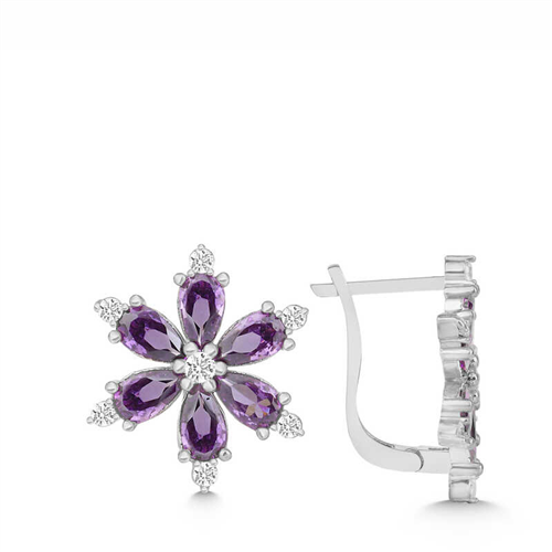 Silver Purple Lotus Flower Women's EarringsThe lotus flower is one of the most beautiful flowers that symbolize spirituality, morality, and cleansing. The lotus flower, which blooms in the polluted waters of the rainforest, has managed to become a symbol of beliefs such as Buddhism and Hinduism with its beauty and purity. Moreover, the lotus flower is considered sacred in many ancient civilizations. Another detail that makes the lotus flower special is the region where the flower grows. The lotus flower, which grows especially in swamps and muddy lands, can remain clean despite the polluted environment in which it grows. Able to clean even a single particle of dust that lands on it, the lotus flower greets those who encounter it with pure beauty. You can gift your loved ones or treat yourself with the silver Purple lotus flower earrings, which are considered sacred in different cultures. These stylish earrings are a perfect option for a birthday gift, Valentine's Day or special occasions. The earrings are made of 925 sterling silver. The silver is rhodium plated. Like other earrings, the silver Purple Lotus flower earring is also handmade. Due to silver and precious stones, there may be a ± 10% deviation from the average product weight.Width: 1.60 cmLength: 2.00 cmAverage Weight: 4.50 gr.