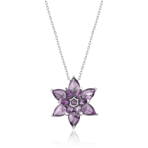 Silver Purple Lotus Flower Women's Necklace The Lotus Flower is one of the most beautiful flowers symbolizing spirituality, morality and cleansing. The lotus flower, which blooms in the polluted waters of the rainforests, has managed to become a symbol of beliefs such as Buddhism and Hinduism with its beauty and purity. Moreover, the lotus flower is considered sacred in many ancient civilizations. Another detail that makes the lotus flower special is the region where the flower grows. The lotus flower, which grows especially in swamps and muddy lands, can remain clean despite the dirty environment in which it grows. Able to clean even a single particle of dust that lands on it, the lotus flower greets those who meet it with a clear beauty. You can gift the silver purple lotus flower necklace, which is considered sacred in different cultures, to your loved ones or treat yourself. Purple or lilac is a pale purple tone that represents the colors of the lilac flower. This stylish necklace, one of the most preferred colors of this year; It is a perfect option for a birthday gift, Valentine's Day or special occasions. The necklace is made of 925 sterling silver. The silver is rhodium plated. Like other necklaces, the silver purple lotus flower necklace is also handmade. Due to silver and precious stones, there may be a ± 10% deviation from the average product weight. Width: 1.90 cm Length: 2.30 cm Average Weight: 6.10 gr. Chain Length: 45.00 cm