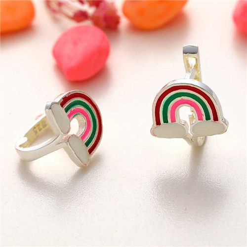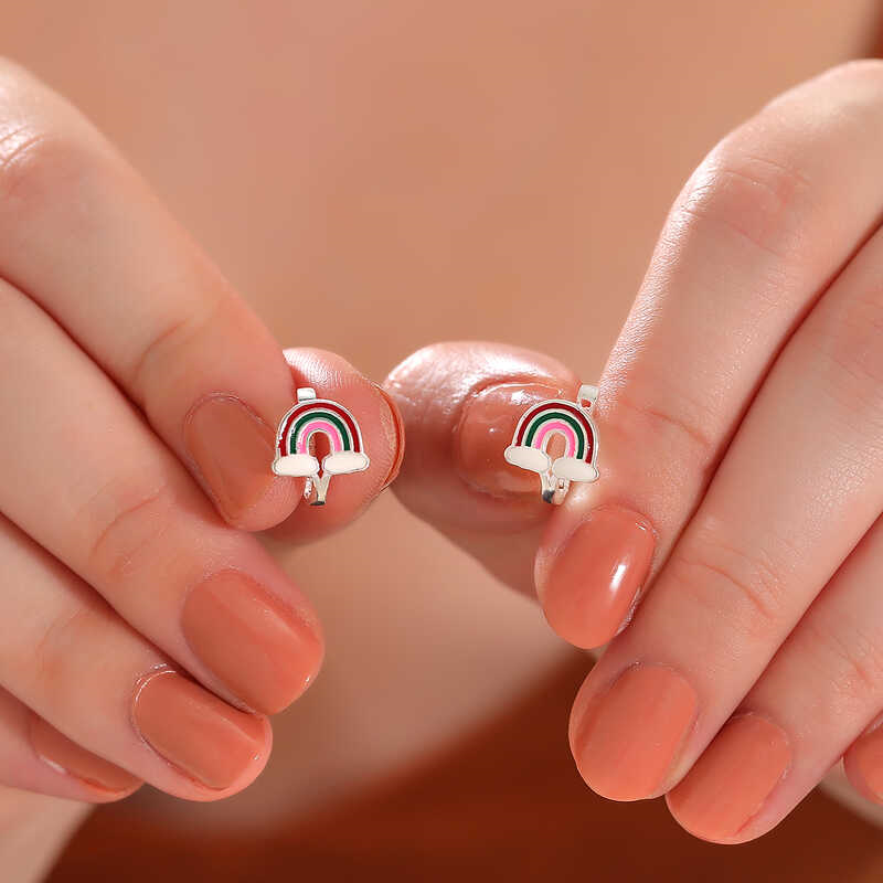 Silver Rainbow Children's EarringsA rainbow is a seven-colored, arch-shaped image formed in the sky by the refraction and reflection of sunlight on falling raindrops. The seven colors seen in a rainbow are red, orange, yellow, green, indigo, and violet. If you want to please your loved ones with different gifts, you can choose rainbow earrings. Silver rainbow children's earrings are made of 925 sterling silver. Rhodium plated silver. Rhodium plated silver children's earrings preserve their shine for a long time and oxidation is delayed. Silver rainbow children's earrings are produced by hand. Due to silver and precious stones, there may be a ± 10% deviation in the average product weight.Width: 1.00 cmLength: 1.10 cmAverage Weight: 1.90 gr.