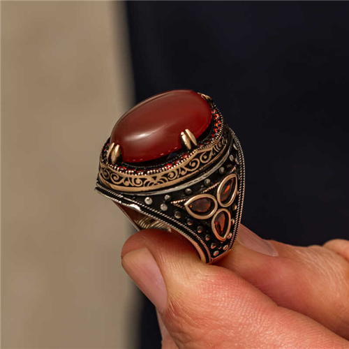Red agate stone is often considered a symbol of courage, power and protection. The red akik used in the male face is also known for its ability to give internal power and energy to the person who has. You can gift yourself or your loved ones on the day of birth, fathers day or special days. oxide coating on silver is made. Oxide plated silver male ring models keep brightness for a long time, oxidizing is delayed. Due to silver and precious stones, the average product weight specified can be ± 10% deviation.
