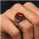 Silver Red Agate Stone Patterned Men's Ring Red agate stone is generally considered a symbol of courage, strength and protection. The red agate used in men's rings offers a remarkable appearance with its vibrant color and is also known for giving inner strength and energy to the wearer. You can give it to yourself or your loved ones on birthdays, Father's Day or special days. Oxidized silver is coated. Oxidized silver men's ring models preserve their shine for a long time and oxidation is delayed. Due to silver and precious stones, there may be ± 10% deviation in the average product weight. Ring Width: 1.50 cm. Ring Length: 2.00 cm. Avg. Weight: 15.00 gr.