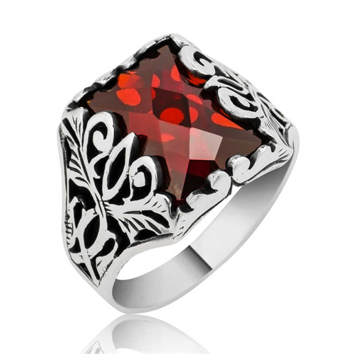 Silver Red Cut Stone Men's RingDesigned for those who do not compromise on classic and elegance, this stylish ring is made of 925 sterling silver. Oxidized silver is coated. The red cut stone on the ring is zircon. Like all silver men's rings, the silver red cut stone men's ring is produced entirely by hand. It is a perfect option for a birthday gift, Father's Day or special occasions. Due to silver and precious stones, there may be ± 10% deviation from the average product weight.Width: 1.00 cmLength: 1.50 cmAverage Weight: 10.00 gr.