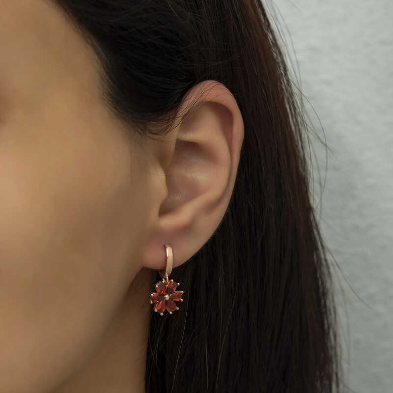 Silver Red Flower Women's EarringsWhy not express your feelings to your loved ones with elegant floral earrings? This stylish earring, which is among the gift options that you can send her on special occasions, is among the most beautiful ways to make your loved ones happy. Silver red flower women's earrings crafted with the highest quality and most sparkling stones are waiting for those who want to express their love once again, for those who want to say you are a flower. This specially designed silver red flower women's earrings is made of 925 sterling silver. Rose plated silver. Rose plated silver women's earrings preserve their shine for a long time and oxidation is delayed. Like all women's silver earring models, the silver red flower women's earrings are produced by hand. There may be ± 10% deviation in the specified product weight due to silver and precious stones. Width: 1.10 cmLength: 2.30 cmAvg. Weight: 4.10 gr.