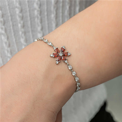 Silver Red Lotus Flower Waterway Women's BraceletThe lotus flower is one of the most beautiful flowers that symbolizes spirituality, morality, and cleansing. Blooming in the polluted waters of the rainforest, the lotus flower has managed to become a symbol of beliefs such as Buddhism and Hinduism with its beauty and purity. Moreover, the lotus flower is considered sacred in many ancient civilizations. Another detail that makes the lotus flower special is the region in which the flower grows. The lotus flower, which grows especially in swamps and muddy lands, can remain clean despite the polluted environment in which it grows. Able to clean even a single speck of dust that lands on it, the lotus flower greets those who encounter it with pure white beauty. It is also an ideal option for women who love a chic and fantasy look. In the collections, the red lotus flower bracelet awaits you with models to suit every taste and concept for women seeking glamour and elegance. The red lotus flower women's bracelet model is made of 925 sterling silver. Rhodium plating is used on silver. Rhodium-plated red lotus flower women's bracelet models preserve their shine for a long time. Like all silver women's bracelet models, the silver red lotus flower waterway women's bracelet model is also hand-crafted. Due to silver and precious stones, there may be a ± 10% deviation from the average product weight.Lotus Flower Diameter: 1.80 cmBracelet Length: 21 cmAverage Weight: 5.50 gr.