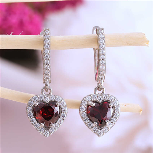 Silver Red Stone Heart EarringsLet your love come to life on the skin of the woman you love with the heart necklace model that expresses love with its heart pattern. Adorn your loved one with love with these heart-shaped earrings that can be chosen by young lovers and those who feel young on special occasions. Heart-shaped earrings that your loved ones will enjoy wearing as much as you do will be one of the best gifts for your loved one. Heart-shaped earrings are made of 925 sterling silver. Rhodium plated silver. Rhodium-plated silver women's heart earrings preserve their shine for a long time and oxidation is delayed. The white stones on the earrings are zirconias. Like all women's earrings, the silver red stone heart earrings are produced by hand. Due to silver and precious stones, there may be a ± 10% deviation in the average product weight.Earring Width: 0.90 cmEarring Length: 2.60 cmAverage Weight: 4 gr