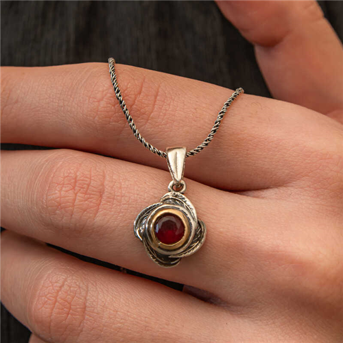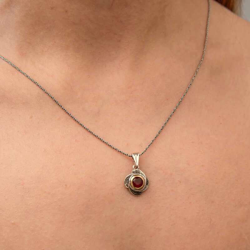 Silver Red Stone Rose Model Women's Necklace The rose figure, a symbol of love and elegance, meets an impressive red stone in this specially designed necklace. The detailed workmanship in the rose form is integrated with the round-cut red stone in the middle of the necklace, offering both a romantic and stylish look. If you want to carry love and elegance around your neck or give a meaningful gift to your loved ones, this special necklace is just for you. Rhodium plated on silver. The red stone rose model authentic necklace with rhodium plating preserves its shine for a long time and oxidation is delayed. As with all women's necklaces, the silver authentic women's necklace is also handmade. Due to silver and precious stones, there may be a ± 10% deviation in the average product weight. Width: 1.20 cm Length: 2.50 cm Average Weight: 5.80 gr. Chain Length: 50.00 cm
