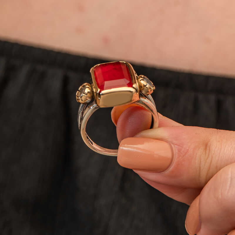Silver Red Zircon Stone Authentic Women's Ring Red zircon stone is a symbol of love, passion and power, it can help increase the emotions and energy of the person wearing it. Its authenticity emphasizes the natural and original design of the ring. It takes its place as a stylish alternative to accompany you in your daily life. This stylish design ring model is a very stylish gift option that can be preferred on birthdays, Valentine's Day or special occasions. Oxidized women's rings preserve their first-day state for a long time. As with all women's silver products, the silver red zircon stone authentic women's ring model is also handmade. Due to silver and precious stones, there may be a ± 10% deviation in the average product weight. Width: 1.00 cm Length: 1.50 cm Average Weight: 7.20 gr.