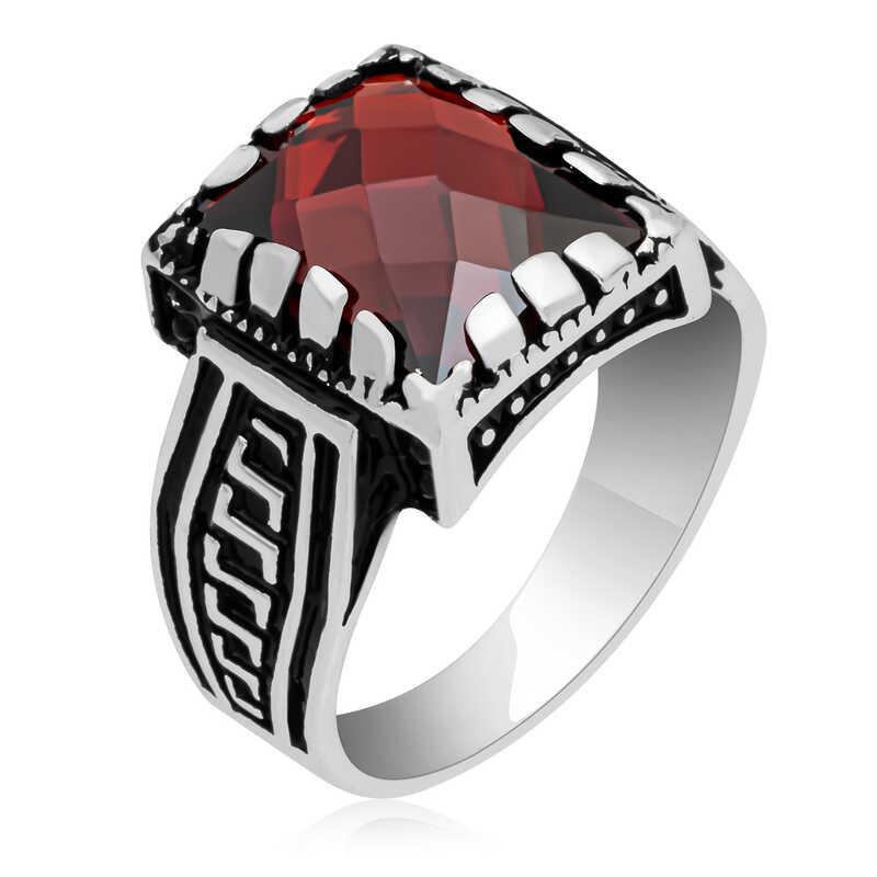Silver Red Zircon Stone Children's Ring This ring model, made of zircon stones on silver, is a stylish accessory that you can use at any time of the day. You can make your child happy by gifting this ring to them at regular times or on their birthday. Children's boys' ring model with red zircon stones is made of 925 sterling silver. Oxidized silver is coated. Oxidized silver children's rings preserve their shine for a long time. Like all children's boys' rings, the silver red zircon stone men's ring model is also produced by hand. Due to silver and precious stones, there may be ± 10% deviation in the average product weight. Ring Width: 1.60 cm Ring Length: 2.20 cm Average Weight: 4 gr.