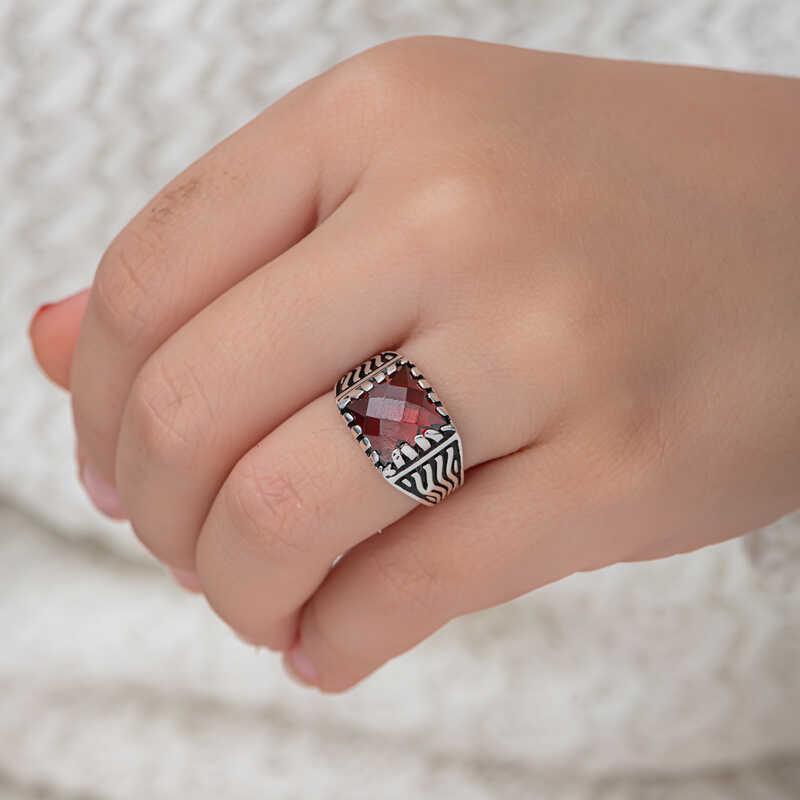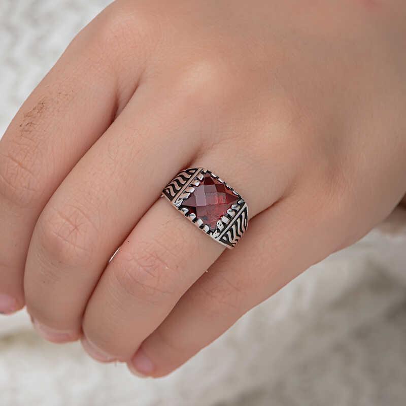 Silver Red Zircon Stone Children's Ring This ring model, made of zircon stones on silver, is a stylish accessory that you can use at any time of the day. You can make your child happy by gifting this ring to them at regular times or on their birthday. Children's boys' ring model with red zircon stones is made of 925 sterling silver. Oxidized silver is coated. Oxidized silver children's rings preserve their shine for a long time. Like all children's boys' rings, the silver red zircon stone men's ring model is also produced by hand. Due to silver and precious stones, there may be ± 10% deviation in the average product weight. Ring Width: 1.60 cm Ring Length: 2.20 cm Average Weight: 4 gr.