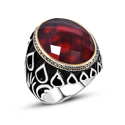 Silver Red Zircon Stone Men's RingThe highest quality and stylish men's jewelry is offered to men with new models. Why not a nice ring to impress a woman? The silver red zircon stone men's ring model is specially handcrafted. You can be happy to wear this stylish silver men's ring on your finger and give it to your friends as a gift. The product will be shipped in a special box. All of our products are handmade. Due to silver and precious stones, there may be a ± 10% deviation from the average product weight. Average Weight: 15.00 gr.