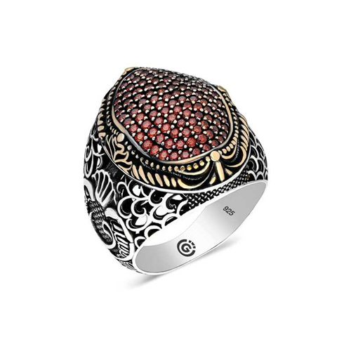 Silver Red Zircon Stone Oval Men's Ring This men's ring model, made of zircon red stone stones on silver, is a stylish accessory that you can use at any time of the day. You can gift this ring to yourself or your loved ones on your birthday, Father's Day or special occasions. The red stone men's ring model is made of 925 sterling silver. Oxide coating is applied on the silver. Oxide coated silver men's ring models preserve their shine for a long time. As with all men's rings, the silver zircon red stone men's ring model is also handmade. Due to silver and precious stones, there may be ± 10% deviation in the average product weight.Width: 2.20 cmLength: 2.90 cmAvg. Weight: 16 g.