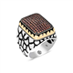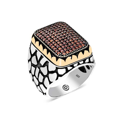 Silver Red Zircon Stone Square Men's Ring This men's ring model, made of zircon red stone stones on silver, is a stylish accessory that you can use at any time of the day. You can gift this ring to yourself or your loved ones on your birthday, Father's Day or special occasions. The red stone men's ring model is made of 925 sterling silver. Oxide coating is applied on the silver. Oxide coated silver men's rings preserve their shine for a long time. As with all men's rings, the silver zircon red stone men's ring model is also handmade. Due to silver and precious stones, there may be ± 10% deviation in the average product weight.Width: 2.30 cmLength: 2.80 cmAvg. Weight: 17.50 gr.