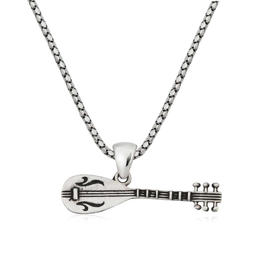 Silver Saz Men's Necklace Bağlama or saz is a type of stringed plectrum instrument widely used in Turkish Folk Music. Instrument-themed necklaces are among the most attractive models for musicians and music lovers. Generally preferred by musicians who carry their music wherever they go, silver necklaces are a nice accessory that reflects a person's style in daily life. This silver saz necklace model, which you and your loved ones will enjoy wearing, will be one of the best gifts. The saz necklace is made of 925 sterling silver. Oxidized silver. Oxidized silver necklace models preserve their shine for a long time and oxidation is delayed. The average length of the silver necklace is 50 cm. Like all necklace models, the silver reed necklace model is also produced by hand. Due to silver and precious stones, there may be a ± 10% deviation in the average product weight. Width: 3.50 cm Length: 0.80 cm Average Weight: 9.00 gr.