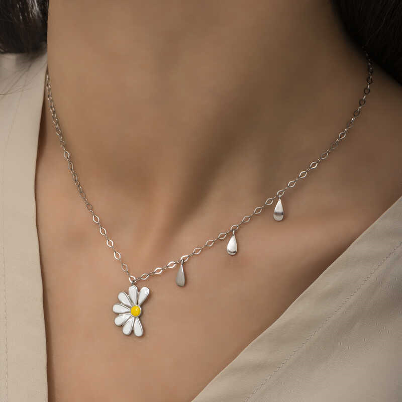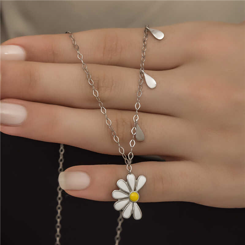 Silver Rhodium Daisy Loves Me Not Women's Necklace Daisy flower expresses the meaning of pure love. One of its most important features is that there is one on each stem. This sparkling necklace designed with this beauty is adorned for you ... This stylish necklace is a perfect option for a birthday gift, Valentine's Day gift or a gift for mothers on special occasions. The silver daisy loves me not women's necklace is made of 925 sterling silver. This necklace has rhodium plating. Rhodium-plated silver women's necklace models preserve their shine for a long time. As with all our silver women's necklace models, the silver daisy loves me not women's necklace is produced by hand. Due to silver and precious stones, there may be ± 10% deviation in the average product weight. Width: 1.40 cm Length: 1.80 cm Average Weight: 3.45 gr. Chain Length: 45 cm