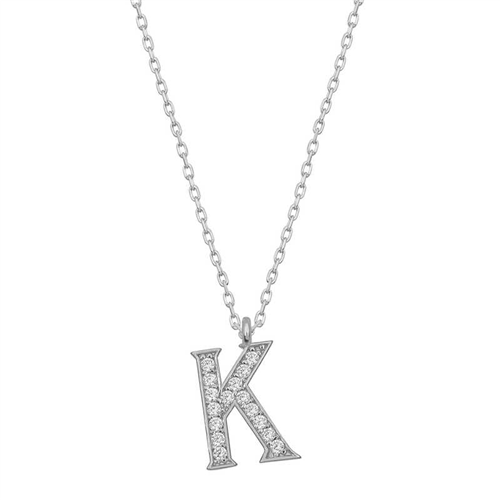 Silver Rhodium Letter K Women's Necklace With silver letter necklaces, those who are precious to you are always with you... Decorate your loved one's neck with love with this special necklace model that young lovers can choose on special occasions. A silver letter necklace that your loved ones will wear with pleasure will be one of the most meaningful gifts. The women's letter necklace model is made of 925 sterling silver. Rhodium plated silver. Rhodium plated silver women's necklace models preserve their shine for a long time. As with all of our products, the silver women's letter necklace model is handmade. Due to silver and precious stones, there may be ± 10% deviation from the average product weight. Width: 0.80 cm Length: 1.10 cm Avg. Weight: 1.30 g