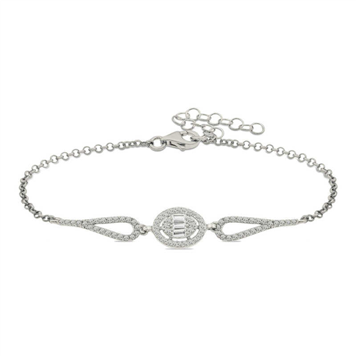 Silver Rhodium Oval Baguette Bracelet You can use our fashion-friendly silver baguette bracelet models in an elegant way both in your daily life and on special days and nights. You can complete your outfits with innovative products that appeal to the taste of women of all ages. With designs that each appeal to a different style, you can choose our models that suit your sporty, classic and alternative clothing styles. This stylish bracelet is a perfect option for a birthday gift, a Valentine's Day gift or on special occasions. Silver rhodium oval baguette stone women's bracelet is made of 925 sterling silver. This bracelet is rhodium plated. Rhodium plated products preserve their shine for a long time and delay oxidation. Like all silver women's bracelet models, the silver rhodium oval baguette stone women's bracelet model is also handmade. Due to silver and precious stones, there may be a ± 10% deviation in the average product weight. Width: 0.90 cm Length: 6.00 cm Average Weight: 4.00 gr. Average Length: 20.00 cm