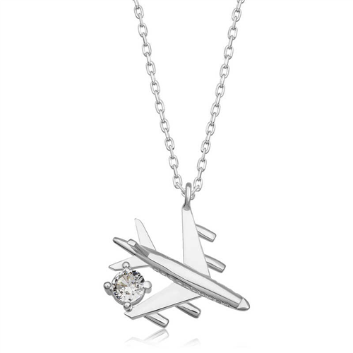 Silver Rhodium Solitaire Airplane Women's Necklace With silver airplane necklaces, those who are precious to you are always with you... The silver solitaire airplane necklace that you and your loved ones will wear with pleasure will be one of the most meaningful gifts. The airplane women's necklace model is made of 925 sterling silver. Rhodium plating is done on the silver. Rhodium-plated silver women's necklace models preserve their shine for a long time. As with all of our products, the silver solitaire women's airplane necklace model is produced by hand. Due to silver and precious stones, there may be ± 10% deviation from the average product weight. Width: 1.80 cm Length: 1.90 cm Average Weight: 2.80 gr