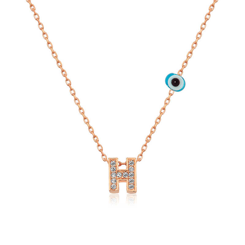 Silver Rose 3D Evil Eye Letter Women's Necklace With silver letter necklaces, those who are precious to you are always with you... Adorn your loved one's neck with love with this special necklace model that young lovers can choose on special occasions. A silver letter necklace that your loved ones will wear with pleasure as much as you will be one of the most meaningful gifts. The 3D letter model is made of 925 sterling silver. Rose plated silver. Rose plated silver women's necklace models preserve their shine for a long time. As with all of our products, the silver 3D evil eye women's letter necklace model is also handmade. Due to silver and precious stones, there may be ± 10% deviation in the average product weight. NOTE: Please specify the letter you want on the product detail page. Width: 0.50 cm Length: 0.70 cm Avg. Weight: 1.70 gr