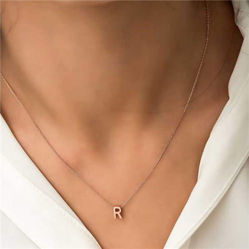 Silver Rose 3D R Letter Women's Necklace With silver letter necklaces, those who are precious to you are always with you ... Decorate your loved one's neck with love with this special necklace model that young lovers can choose on special occasions. A silver letter necklace that your loved ones will wear with pleasure will be one of the most meaningful gifts. The 3D letter model is made of 925 sterling silver. Rose plated silver. Rose plated silver women's necklace models preserve their shine for a long time. As with all of our products, the silver 3D women's letter necklace model is also handmade. Due to silver and precious stones, there may be ± 10% deviation from the average product weight. Width: 0.40 cm Length: 0.40 cm Avg. Weight: 1.47 g