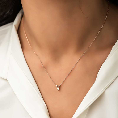Silver Rose 3D Letter V Women's Necklace With silver letter necklaces, those who are precious to you are always with you... Adorn your loved one's neck with love with this special necklace model that young lovers can choose on special occasions. A silver letter necklace that your loved ones will wear with pleasure will be one of the most meaningful gifts. The 3D letter model is made of 925 sterling silver. Rose plated silver. Rose plated silver women's necklace models preserve their shine for a long time. As with all of our products, the silver 3D women's letter necklace model is also handmade. Due to silver and precious stones, there may be ± 10% deviation in the average product weight. Width: 0.40 cm Length: 0.40 cm Avg. Weight: 1.47 g
