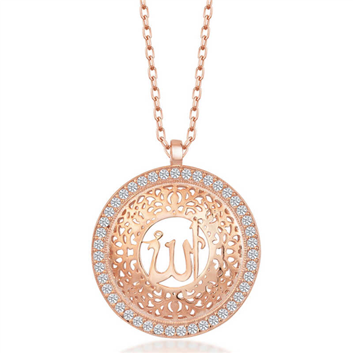 Silver Rose Allah Written Women's Necklace Complete your eye-catching elegance with our necklace with Allah written on it, the first of 99 beautiful names. This beautiful necklace model is made of 925 sterling silver. Rose plating is done on the silver. Our rose-plated silver women's necklace models preserve their shine for a long time and oxidation is delayed. The average chain length of this Allah written necklace is 45 cm. As with all our women's necklace models, the Allah written silver women's necklace is handmade and there may be ± 10% deviation in product weight due to precious stones. Width: 2.20 cm. Length: 2.50 cm. Average Weight: 3.40 gr.
