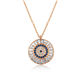 Silver Rose Baguette Stone Evil Eye Necklace People have used the evil eye bead for many years to protect themselves from evil gazes. The evil eye bead is a precaution against the negative effects of evil gazes on people. For this reason, people wear the evil eye bead to protect their loved ones. This evil eye necklace reflects elegance and style. You can choose this model, which has always been popular and does not compromise on its elegance, as a birthday gift, Valentine's Day gift or a gift for mothers on special occasions. The silver evil eye women's necklace is made of 925 sterling silver. Rose gold plated over silver. Rose gold plated silver women's necklaces preserve their shine for a long time and oxidation is delayed. The stones on it are baguette and zircon. Like all silver women's necklace models, this silver baguette stone evil eye women's necklace model is entirely handmade. Due to silver and precious stones, there may be a ± 10% deviation in the average product weight. Width: 1.50 cm Length: 1.50 cm Average Weight: 2.51 gr. Chain Length: 45.00 cm