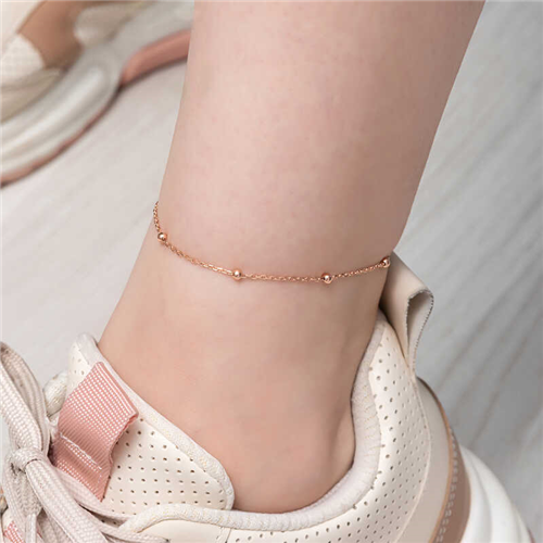 Silver Rose Ball Chain Anklet While women are often thought of when jewelry is mentioned, it has influenced both men and women throughout history. Women wear jewelry to appear more elegant and attractive, while men wear it for style. Jewelry not only represents social status, personality, beliefs, and identity, but also serves various functions. In Anatolia, women working in vineyards, gardens, and fields could easily locate their young children by the sound they made from anklets. The sound they made was also used to deter poisonous animals like snakes and scorpions from approaching. Today, they are worn by women who want to look elegant and stylish. Don't deprive your wrists of this elegance and visit our anklet section to choose your favorite model. The ball chain anklet model is made of 925 sterling silver. Rose plating is applied to the silver. Rose-plated women's anklets preserve their shine for a long time, turn silver to a rose color, and delay oxidation. All of our products are handmade. Due to silver and precious stones, there may be a ±10% deviation in product weight. Anklet Ball Diameter: 0.30 cm Anklet Chain Length: 25 cm Average Weight: 1.50 gr.