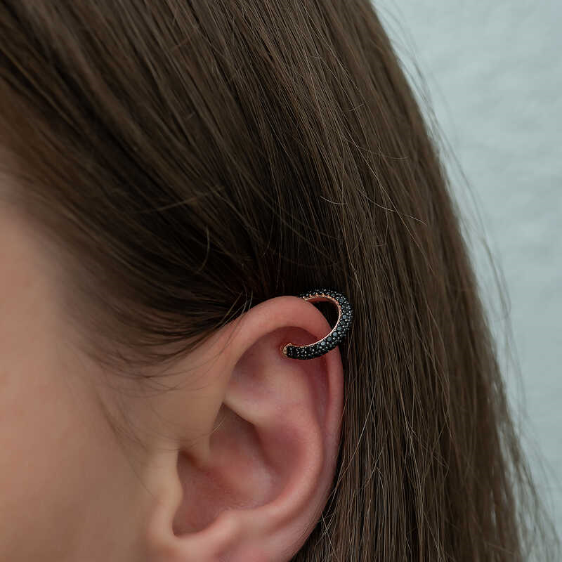 Silver Rose Black Stone Hoop Cartilage EarringsDifferent trendy designs are introduced every year. This year's most popular models are cartilage products. Stylish cartilage accessories that you can combine with your earrings will make you look radiant at all times. You can add this stylish earring to your jewelry box or consider it as a gift for a loved one. The stylish black zircon stone hoop cartilage earring is made of 925 sterling silver. Rose gold plated on silver. Rose-plated silver earrings preserve their shine for a long time and oxidation is delayed. The stones on them are zircon. Like all women's silver products, the silver rose stone hoop cartilage earrings are produced by hand. Due to silver and precious stones, there may be a ± 10% deviation in the average product weight.Earring Thickness: 0.30 cmEarring Diameter: 2.00 cm Average Weight: 1.65 gr.Note: 1 piece of product is sent.