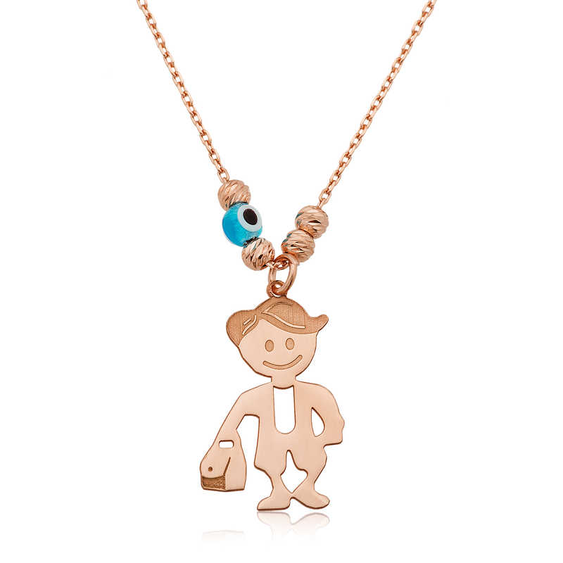 Silver Rose Boy's Necklace It is a necklace that you will love to use in your daily life and can create various combinations to reflect your style with its different design. The silver businessman necklace that you and your loved ones will wear with pleasure will be one of the best gifts. The necklace is made of 925 sterling silver. Rose gold plated on silver. Rose gold plated silver necklace models preserve their shine for a long time and oxidation is delayed. The stone on it is glass. Like all silver necklace models, the silver businessman women's necklace model is produced by hand. Due to silver and precious stones, there may be ± 10% deviation from the average product weight. Width: 1.30 cm Length: 2.00 cm Average Weight: 2.20 gr. Chain Length: 45 cm