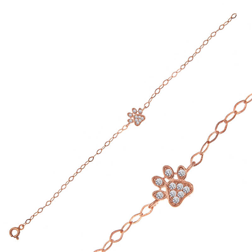 Silver Rose Cat Paw Women's Bracelet Complete your daytime elegance with the Paw Bracelet, the most elegant way to show your love to your lovely friends. You can also gift this stylish bracelet, which you can enjoy using, to your loved ones. The product is made of 925 sterling silver. Rose plated on the silver. Like all our silver women's bracelet models, the silver paw women's bracelet model is also handmade. Due to silver and precious stones, there may be a ± 10% deviation from the average product weight. Cat Paw Width: 1.10 cm Cat Paw Length: 0.80 cm Chain Length: 19 cm Average Weight: 1.00 gr.