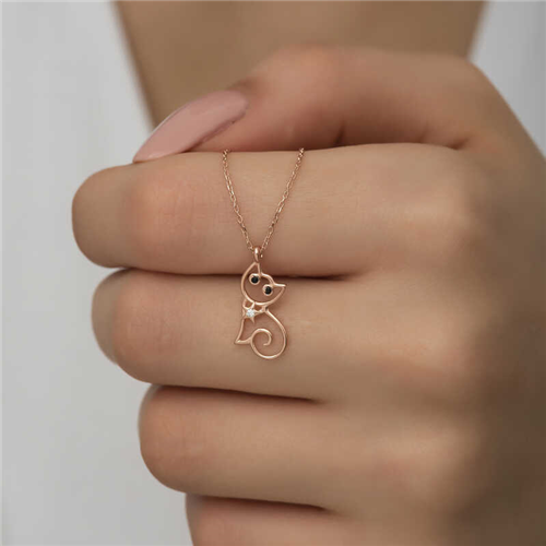 Silver Rose Catwoman Necklace Cats, the adorable source of joy in our homes, are not only clean but also a symbol of innocence. They have a noble and logical personality, excellent intuition and rational sensitivity. Silver jewelry, which is one of the most preferred gift options for special occasions, is designed for those who want to make their loved ones happy and give them a gift they can carry with them at all times. You can gift the cat-figured silver necklace model, the symbol of innocence, to your sister, lover or friends. The zircon stone cat woman necklace model is made of 925 sterling silver. Rose plated silver. Rose plated silver cat necklace models preserve their shine for a long time and oxidation is delayed. All stones on the necklace are zircon. The average silver chain length is 45 cm. The silver women's cat necklace is produced by hand, like all other silver women's necklace models. Due to silver and precious stones, there may be ± 10% deviation in the average product weight. Width: 1.00 cm Height: 1.70 cm Weight: 1.30 gr.