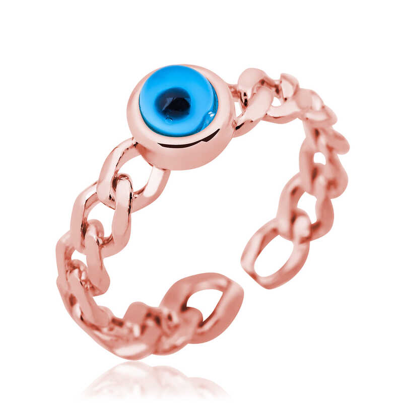 Silver Rose Chain Patterned Evil Eye Women's Ring Evil eye beads have been used for many years to protect themselves from evil gazes. The evil eye bead is a precaution against the negative effects of evil gazes on people. For this reason, people wear evil eye beads to protect their loved ones. This evil eye ring reflects elegance and style. You can choose this model, which has always been popular and does not compromise on its elegance, as a birthday gift, Valentine's Day gift or a gift for mothers on special occasions. Silver rose chain patterned evil eye women's ring is made of 925 sterling silver. Rose plated silver. Rose plated silver women's rings preserve their shine for a long time and oxidation is delayed. The stone on it is glass. Like all silver women's rings, this silver rose chain evil eye women's ring is entirely handmade. Due to silver and precious stones, there may be a ± 10% deviation in the average product weight. Width: 0.50 cm Length: 0.50 cm Average Weight: 2.00 gr.