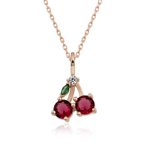 Silver Rose Cherry Figured Fruit Necklace The most preferred accessories of the summer season will be among your favorites with their colorful fruit concept. Fruit concept accessories will be the most talked about necklaces of the summer and will add color to your daily style. This stylish cherry figure necklace is a perfect option for a birthday gift, Valentine's Day gift or on special occasions. Silver zircon stone cherry figured fruit necklace is made of 925 sterling silver. This necklace is rose plated. Rose plated products preserve their shine for a long time and delay oxidation. Like all silver women's necklace models, the silver cherry figured fruit necklace model is produced by hand. Due to silver and precious stones, there may be a ± 10% deviation in the average product weight. Width: 1.00 cm Length: 1.50 cm Average Weight: 2.25 gr.