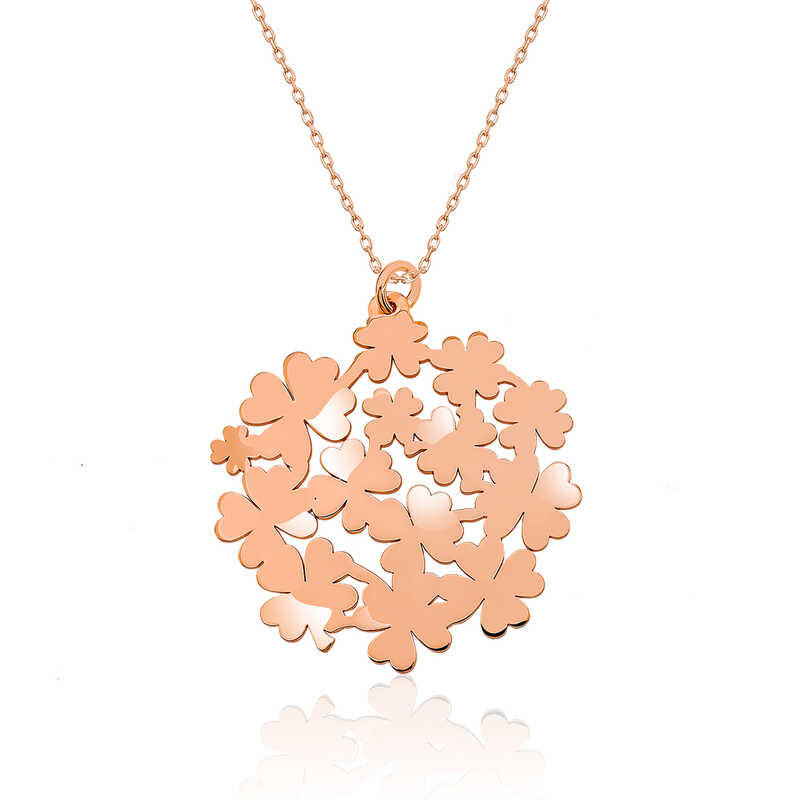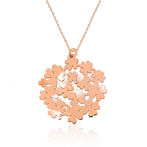 Silver Rose Clover Bouquet Women's Necklace The four-leaf clover is considered a symbol of good luck in all cultures. Each of the four leaves of the clover has a different meaning. The first leaf symbolizes hope, the second symbolizes faith, the third symbolizes love, and the fourth leaf symbolizes luck. This specially designed women's necklace model consisting of heart-shaped clovers is made of 925 sterling silver. This elegant necklace will be a very stylish gift option for young lovers on special occasions. The clover bouquet women's necklace, consisting of clovers of different sizes in silver, has a rose coating. Rose-plated silver products preserve their shine for a long time and delay oxidation. The silver clover bouquet women's necklace will be one of the most beautiful gifts that not only you but also your loved ones will enjoy wearing. Like all our silver women's necklace models, the silver clover bouquet women's necklace is handmade. Due to silver and precious stones, there may be ± 10% deviation in the specified product weight. Width: 3.00 cm Length: 3.30 cm Average Weight: 4.35 gr. Chain Length: 45.00 cm