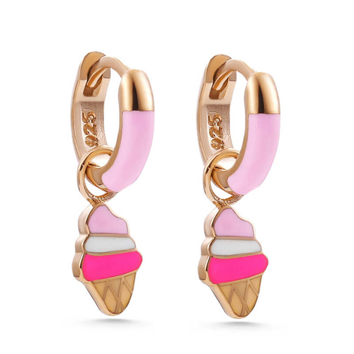Silver Rose Colored Ice Cream Dangle Children's Earrings You will love using this necklace, which you can choose in everyday life, special occasions and nights. This timeless silver necklace awaits all women who want to create a stylish look. Silver colored ice cream children's earrings are a perfect option for a birthday gift, Valentine's Day gift or as a gift for mothers on special occasions. Colorful ice cream children's earrings are made of 925 sterling silver. Rose plated silver. Rose plated women's earrings preserve their shine for a long time and delay oxidation. Like all women's earrings, silver colored ice cream dangle children's earrings are also handmade. Due to silver and precious stones, there may be ± 10% deviation from the average product weight. Width: 0.60 cm. Height: 2.10 cm. Average weight: 2.00 gr.