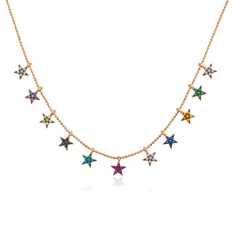 Silver Rose Colored Stars Women's Necklace The star is an auspicious symbol believed to bring luck in many societies and teachings. It carries the energy of the Planet Venus. The Planet Venus is also the representative of the energy of love and romance. This stylish necklace consisting of colorful stars is a perfect option for a birthday gift, Valentine's Day gift or on special occasions. Silver colored stars women's necklace is made of 925 sterling silver. This necklace is rose gold plated. Rose gold plated silver women's necklace models preserve their shine for a long time. As with all our silver women's necklace models, the silver colored stars women's necklace model is produced by hand. Due to silver and precious stones, there may be ± 10% deviation in the average product weight. Width: 0.60 cm Length: 0.60 cm Average Weight: 3.55 gr. Chain Length: 45 cm