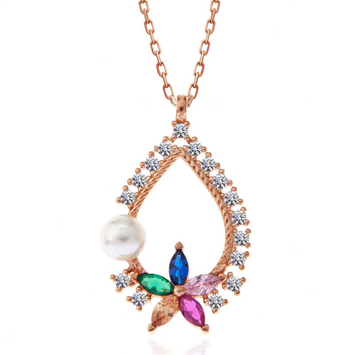 Silver Rose-Colored Stoned Flower Women's Necklace The most special and elegant way to express your feelings to your loved ones is with stylish, colorful and fragrant flowers that you can send her. Flowers, which are among the gifts to be given on special occasions, have been designed with a different interpretation this time ... This stylish silver-colored stoned flower heart necklace is a perfect option for a birthday gift, Valentine's Day gift or as a gift for mothers on special occasions. Silver-colored stoned flower women's necklace is made of 925 sterling silver. This necklace is rose plated. Rose-plated silver women's necklace models preserve their shine for a long time. The stones on it are zircon. As with all our silver women's necklace models, the silver-colored stoned flower women's necklace model is also handmade. Due to silver and precious stones, there may be ± 10% deviation in the average product weight. Width: 1.40 cm Length: 2.40 cm Avg. Weight: 2.90 gr. Chain Length: 45 cm