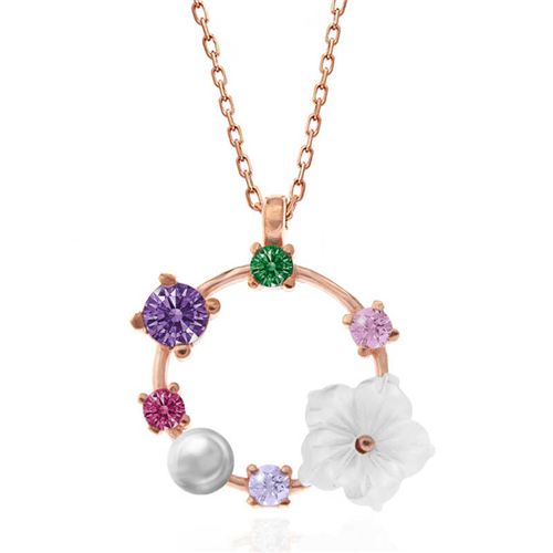 Silver Magnolia Flower Women's Necklace with Rose-Colored Stones The most special and elegant way to express your feelings to your loved ones is to send her stylish, colorful and fragrant flowers. Flowers, which are among the gifts to be given on special occasions, this time found meaning with a silver necklace. The silver flower women's necklace crafted with the highest quality, brightest, and most sparkling stones is waiting for those who want to express their love once again, for those who want to say "you are a flower." This specially designed silver magnolia flower women's necklace is made of 925 sterling silver. Rose plating is applied on the silver. Rose-plated silver women's necklace models preserve their shine for a long time and oxidation is delayed. The average silver chain length is 45 cm. Like all women's silver necklace models, the silver-colored stone magnolia flower women's necklace is also handmade. Due to silver and precious stones, there may be a ± 10% deviation in the specified product weight. Width: 1.80 cm Length: 2.00 cm Weight: 3 gr.