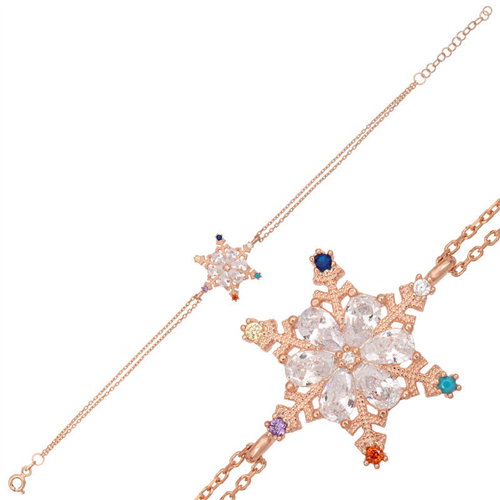 Silver Rose-Colored Stone Snowflake Women's Bracelet There is actually only one of each snowflake. With the snowflake bracelet you gift to your loved one, you are silently expressing that she is unique and one-of-a-kind for you. Add sparkle to your elegance with a silver snowflake women's bracelet model suitable for every taste. The snowflake women's bracelet is made of 925 sterling silver. Rose plated silver. Rose plated silver women's bracelet models preserve their shine for a long time and oxidation is delayed. The white and colored stones on the bracelet are zircon. The silver snowflake women's bracelet model, like other snowflake women's bracelet models, is produced by hand. Due to the silver and precious stones specified, there may be ± 10% deviation in product weight. Bracelet Length: 2.20 cm Bracelet Width: 1.80 cm Average Weight: 3 gr. Chain Length: 19.50 cm